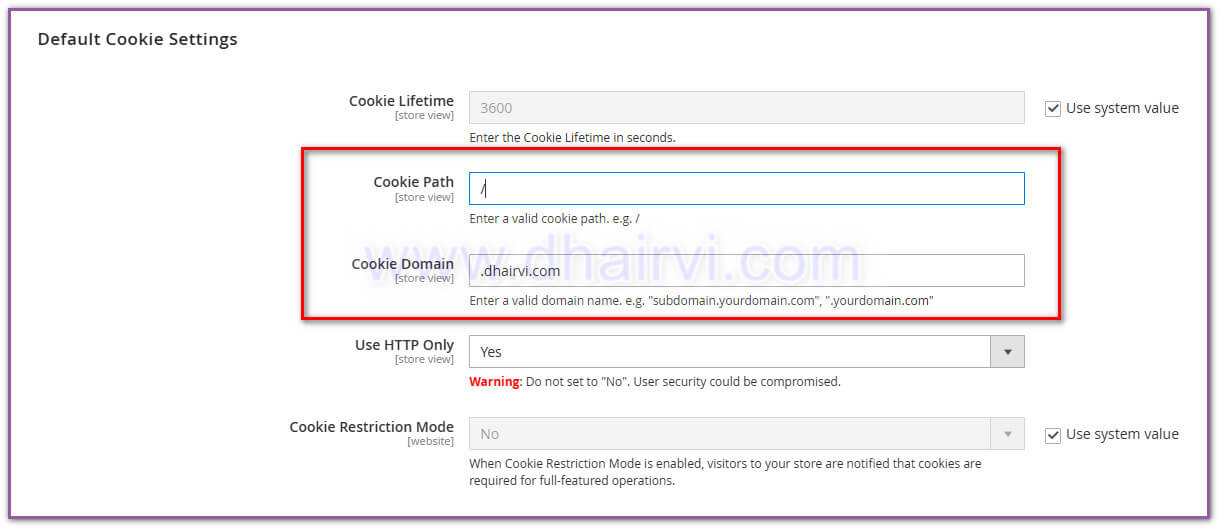 Here, insert the main domain to the “Cookie Domain” field, as shown in below screenshot